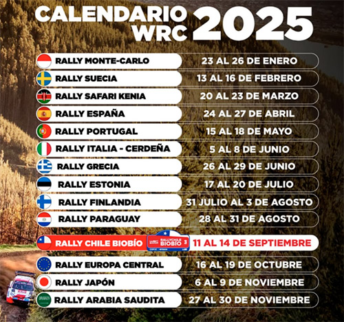 El Rally Chile Bio Bío regresa al WRC del 11 al 14 de septiembre 2025