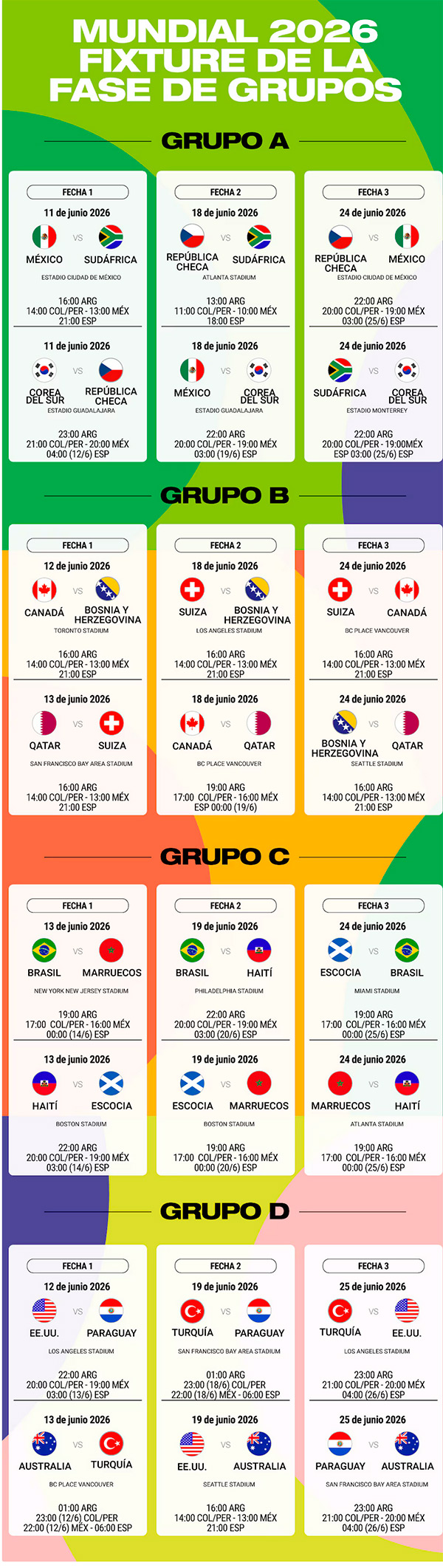 El calendario completo del Mundial 2026: días, horarios y estadios de todos los partidos