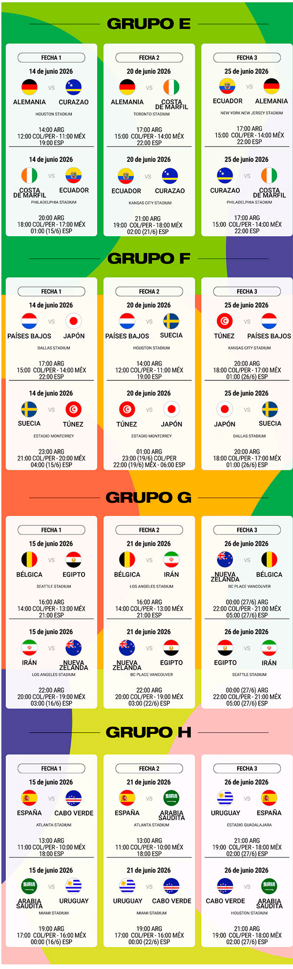 13:00 (Argentina) / 12:00 (Este EE.UU) España vs. Cabo Verde – Grupo H – Atlanta Stadium