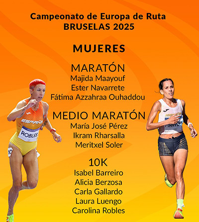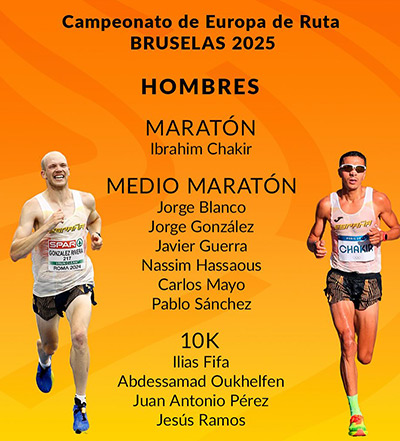 El Campeonato de Europa de Ruta se disputará en Bruselas el 12 y 13 de abril de 2025. Un total de 22 son los atletas españoles estan preseleccionados para la cita.