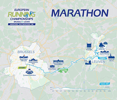 La prueba de maratón se disputará el domingo, 13 de abril de 2025 por la mañana, tanto en mujeres como en hombres. La salida será en el Palacio Real de Bruselas y se llegará a la localidad vecina de Lovaina, en la región de Flandes. La prueba de medio maratón contará con 10 atletas (seis hombres y cuatro mujeres).