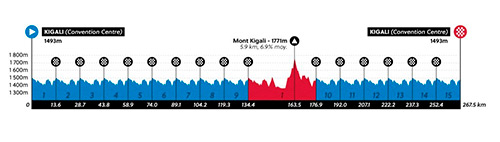 La salida y la meta estarán situadas en el Kigali Convention Centre, con un recorrido de 267,5 kilómetros y un desnivel acumulado de 5.475 metros que pondrá a prueba a los mejores corredores del planeta. La carrera comenzará a las 09:45 hora local y está previsto que finalice en torno a las 16:45.