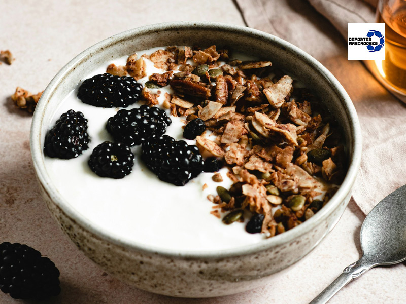 • Incluye fuentes de proteínas como huevos, yogur griego, y legumbres.