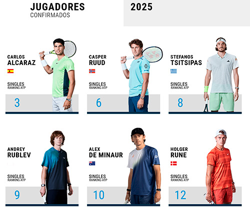 Este año defenderá corona el noruego Casper Ruud, y se tendrá que medir a jugadores de la talla de Andrey Rublev, Stefanos Tsitsipas, Alex de Minaur, Holger Rune Asegurados, entre ortos.