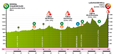 El cierre de la Vuelta partirá desde la Bodega Cillar de Silos, en Quintana del Pidio, una de las localidades con más tradición vitivinícola en la Ribera del Duero burgalesa. Desde allí, los ciclistas afrontarán el ascenso final a las icónicas Lagunas de Neila, final habitual y decisivo que puede dictar sentencia.
