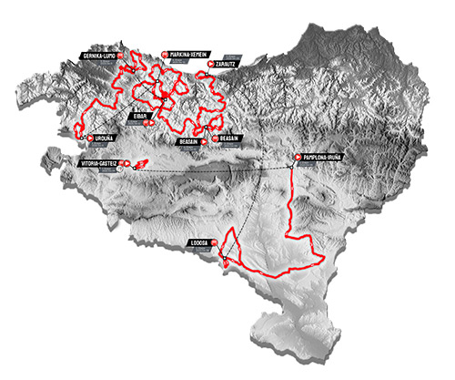 La competición ciclista dará inicio con una contrarreloj individual en Vitoria-Gasteiz. La prueba se irá hacia Navarra en una jornada que se presume abierta a los sprinters entre los municipios de Pamplona y Lodosa, para continuar los días posteriores en territorio vasco con cuatro etapas de media montaña donde los ciclistas recorrerán las localidades de Zarautz, Beasain, Markina-Xemein, Orduña, Gernika y Eibar.